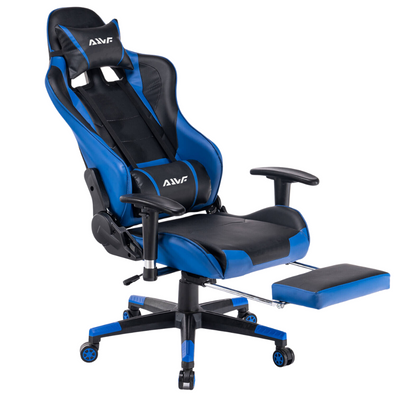 Fotel gamingowy kubełkowy krzesło dla gracza ergonomiczny z podnóżkiem niebiesko-czarny Ryan