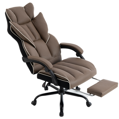 Fotel biurowy ergonomiczny obrotowy krzesło z podnóżkiem brązowy Premium