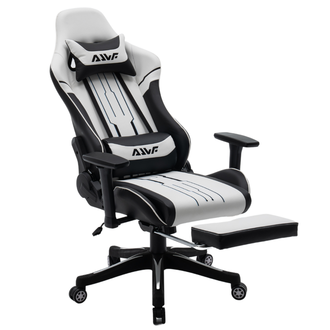 Fotel dla gracza gamingowy ergonomiczny krzesło z podnóżkiem biało-czarny Cyber