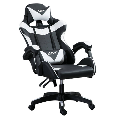 Fotel gamingowy z podnóżkiem ekoskóra krzesło dla gracza biurowy ergonomiczny czarno-biały Champion