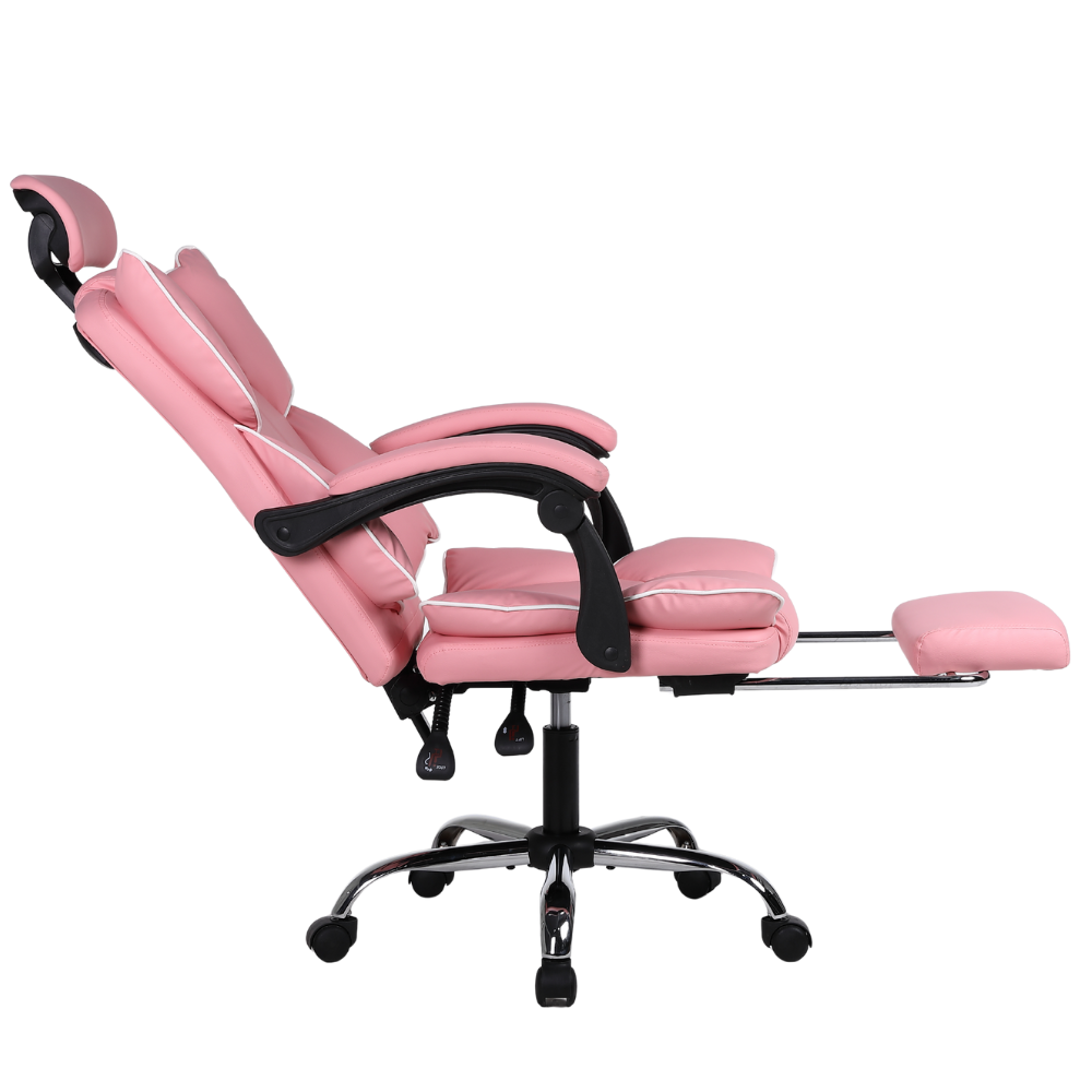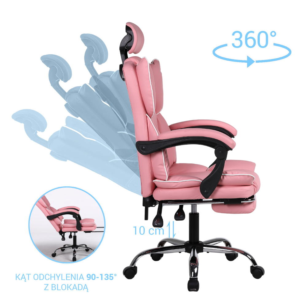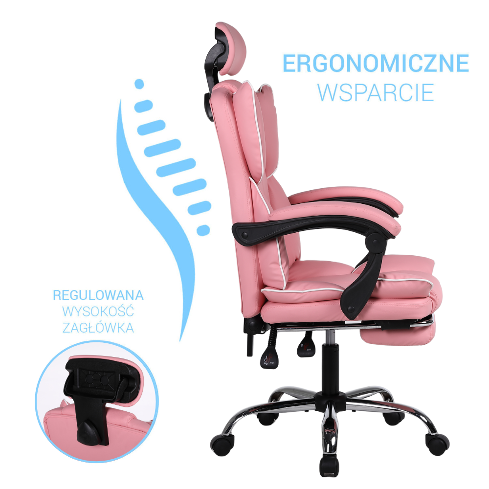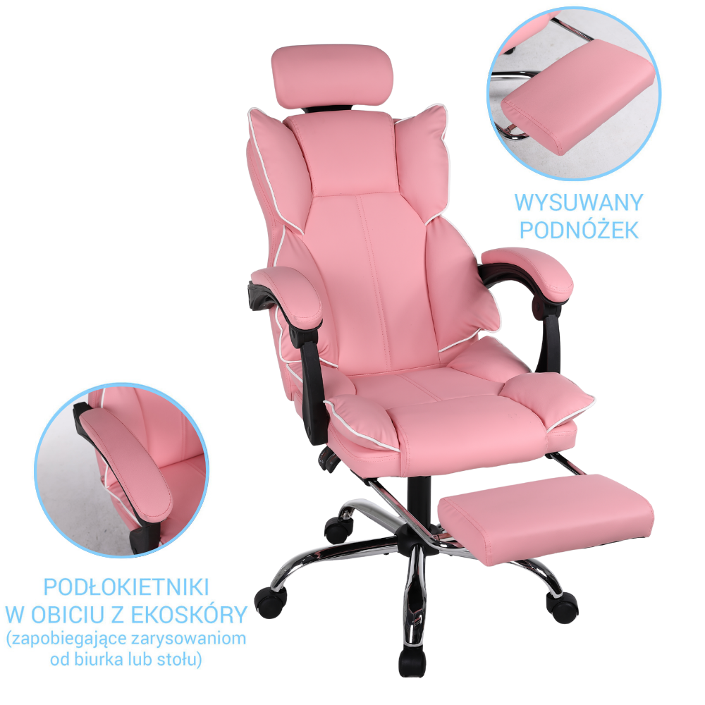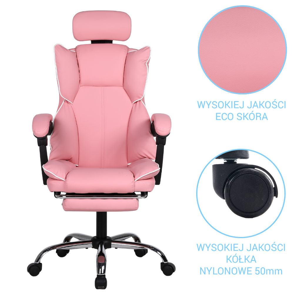Opinie o Fotel biurowy ergonomiczny obrotowy krzesło do biurka z podnóżkiem różowy Office