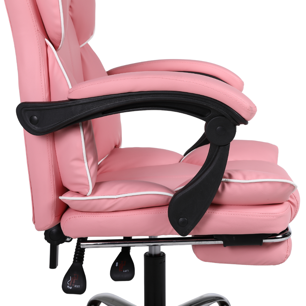 Fotel biurowy ergonomiczny obrotowy krzesło do biurka z podnóżkiem różowy Office