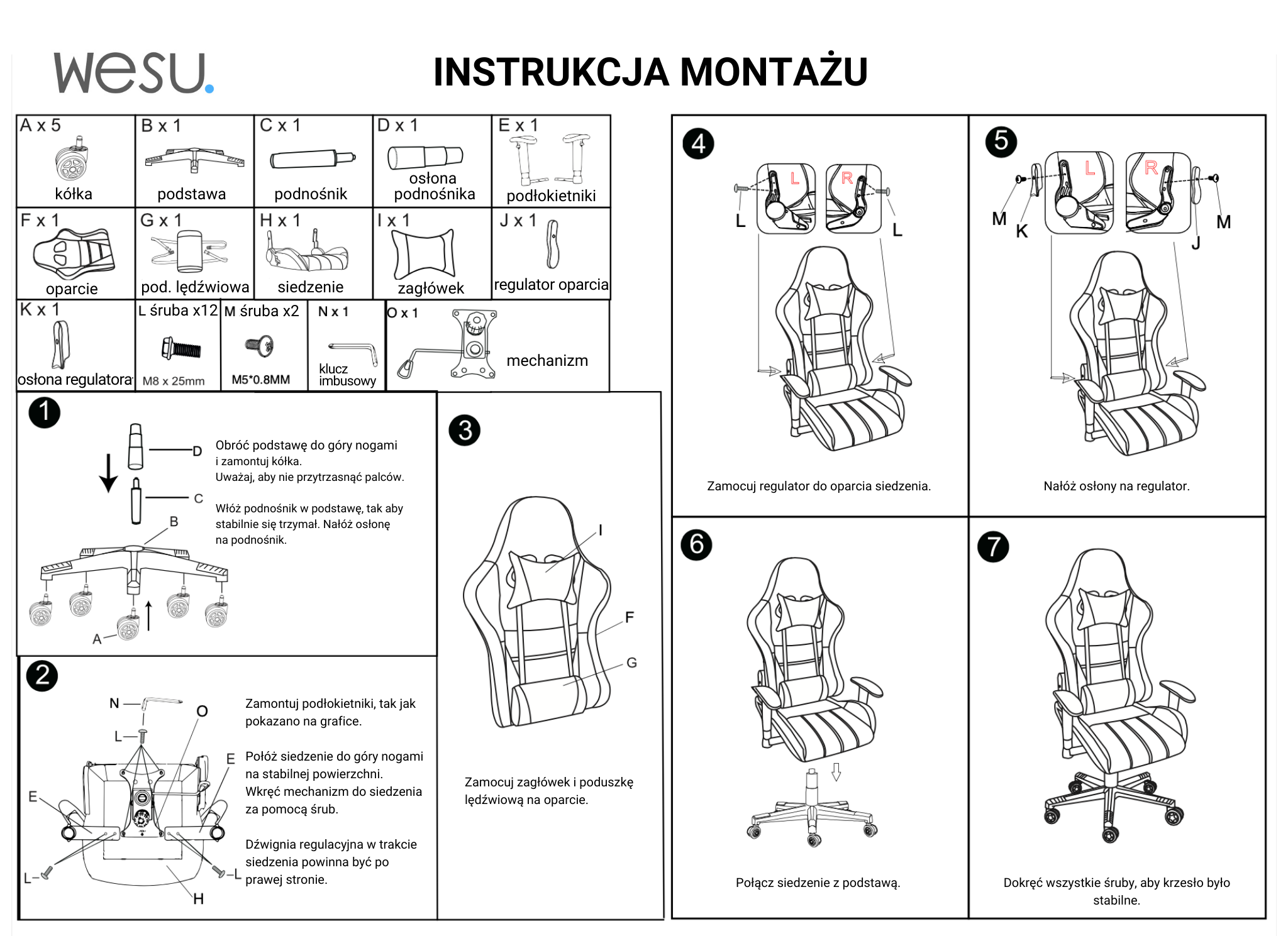 ✅ Ergonomiczna budowa – wyprofilowane oparcie, poduszka lędźwiowa i poduszka karkowa dbają o zdrową postawę kręgosłupa.