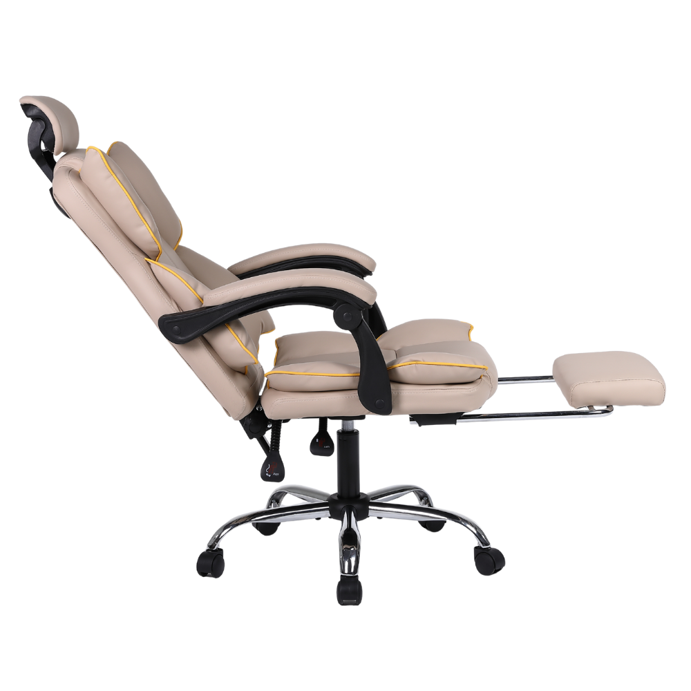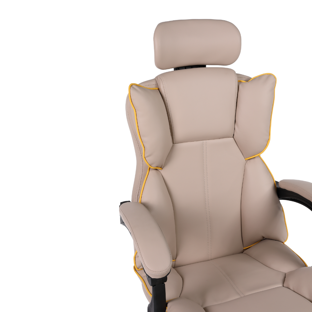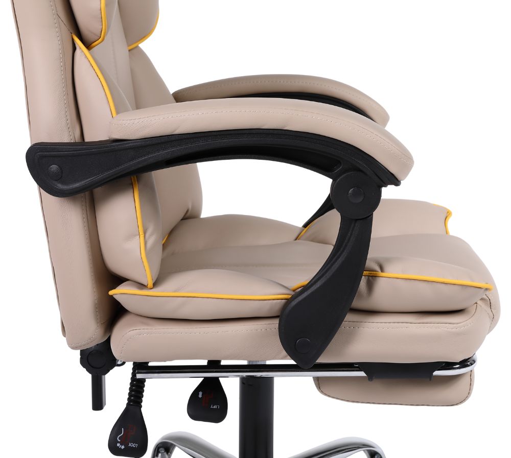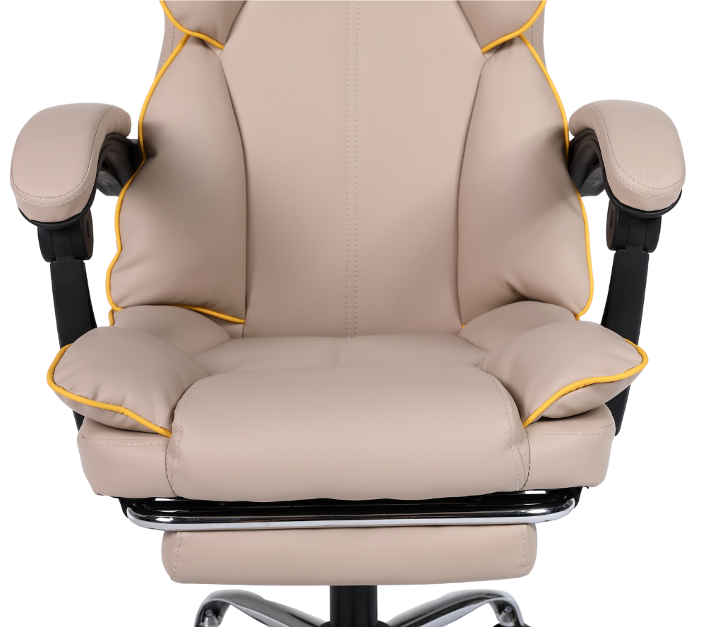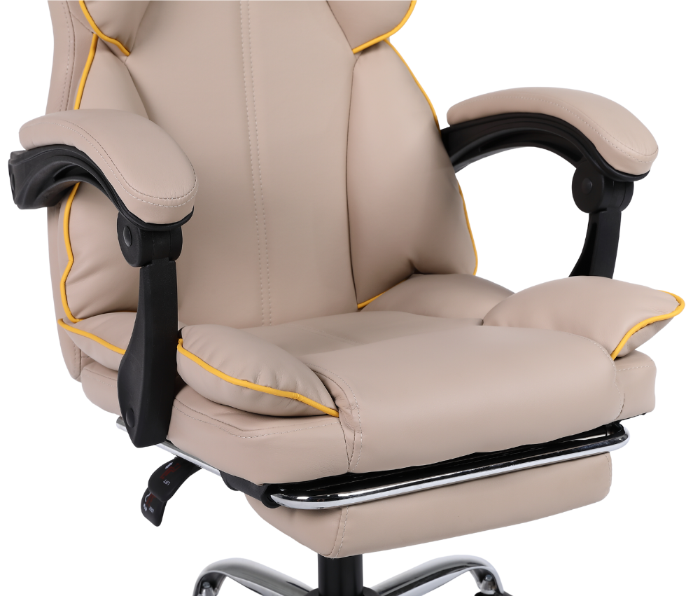 Fotel ergonomiczny biurowy obrotowy z podnóżkiem do biurka beżowo-złoty Office