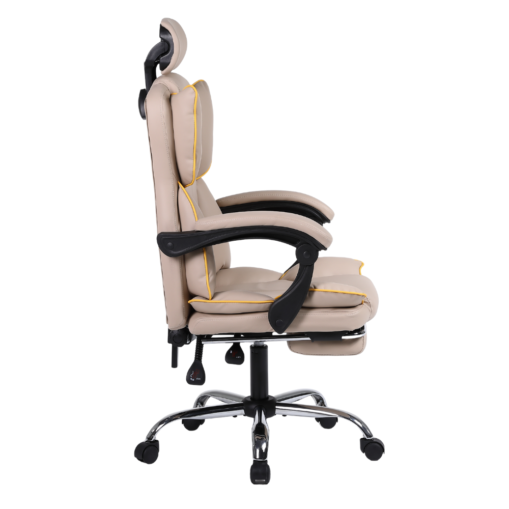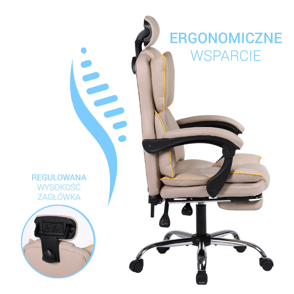 Opinie o Fotel ergonomiczny biurowy obrotowy z podnóżkiem do biurka beżowo-złoty Office