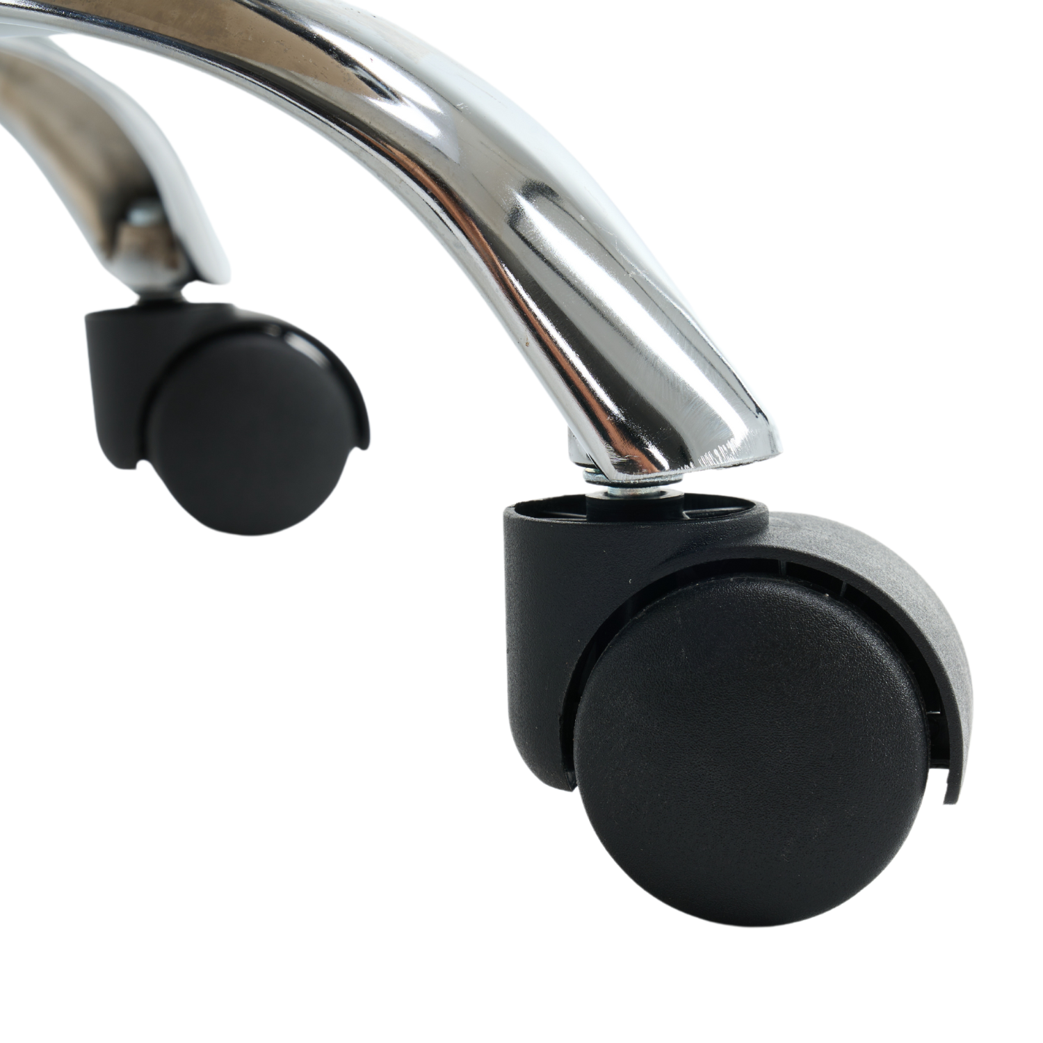 • chromowana pięcioramienna mocna podstawa zapewniająca stabilność fotela