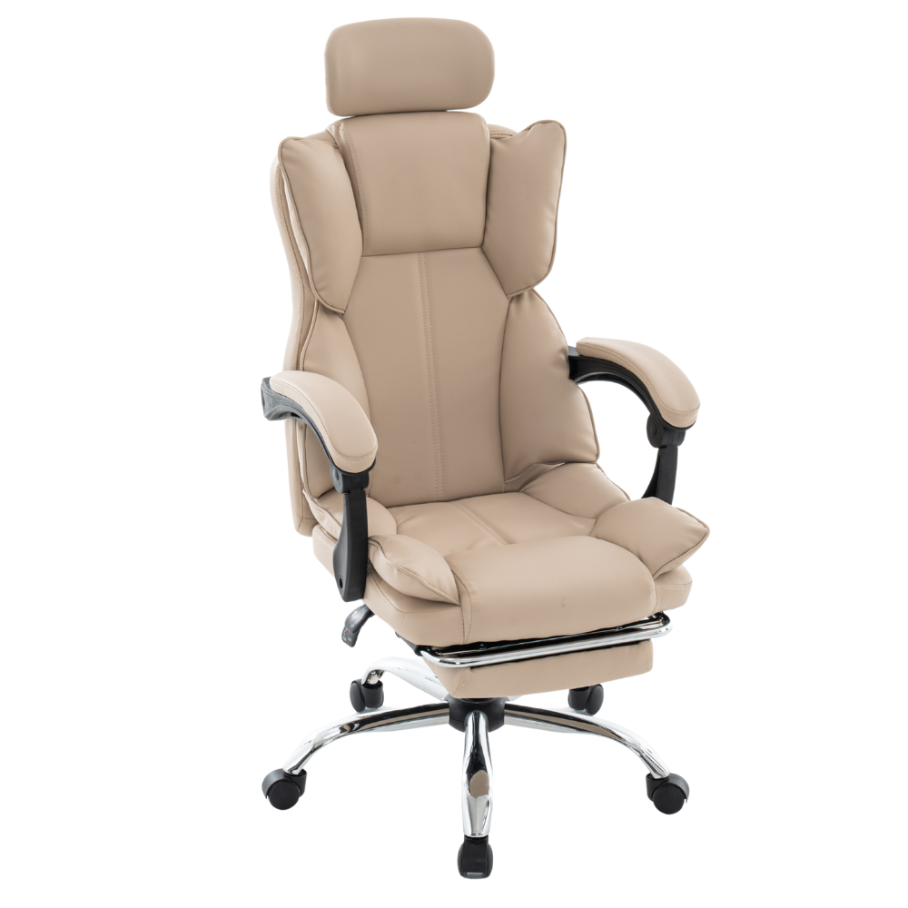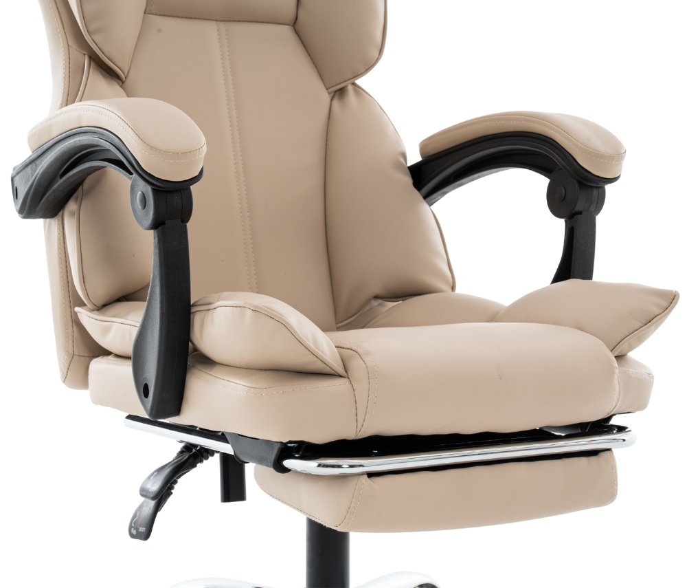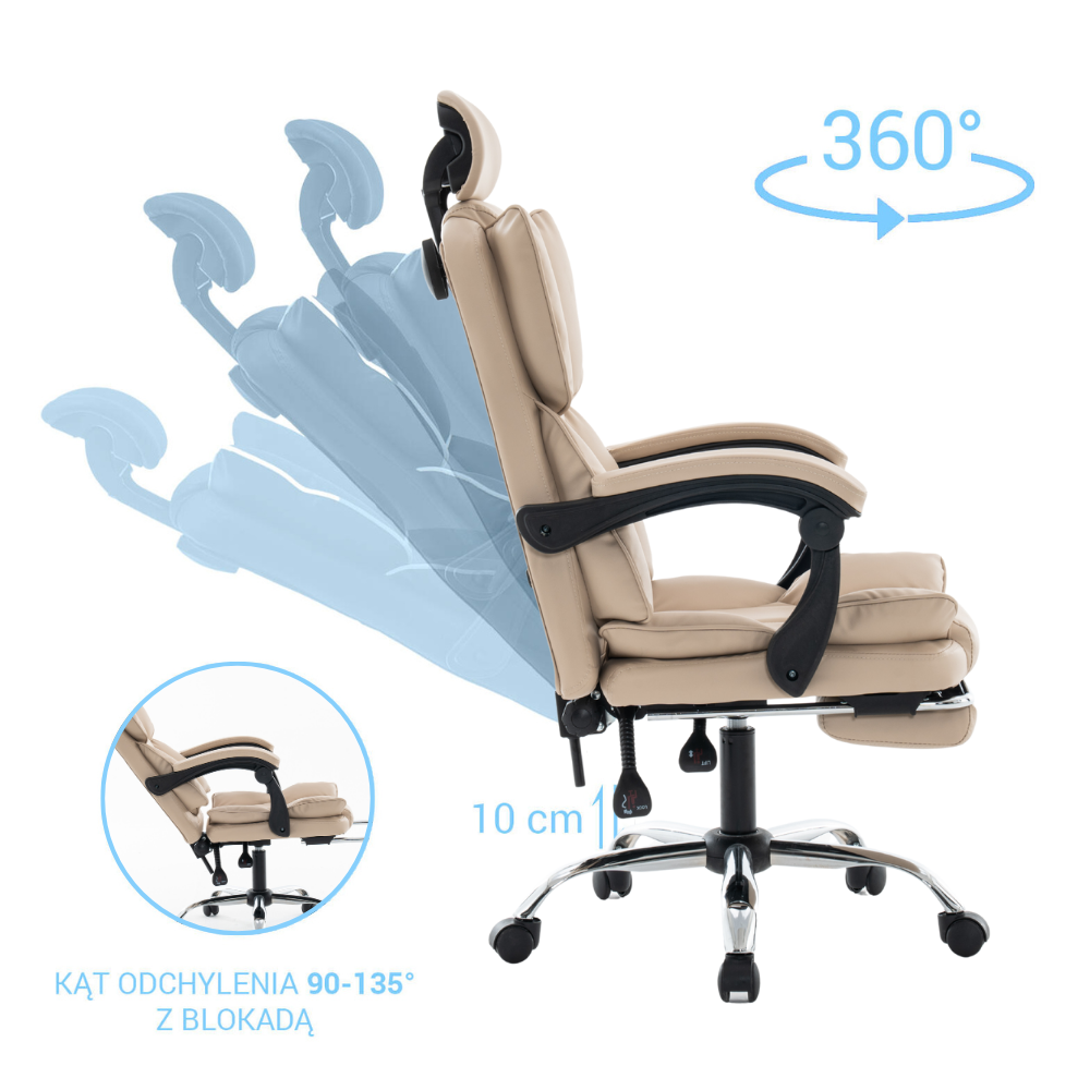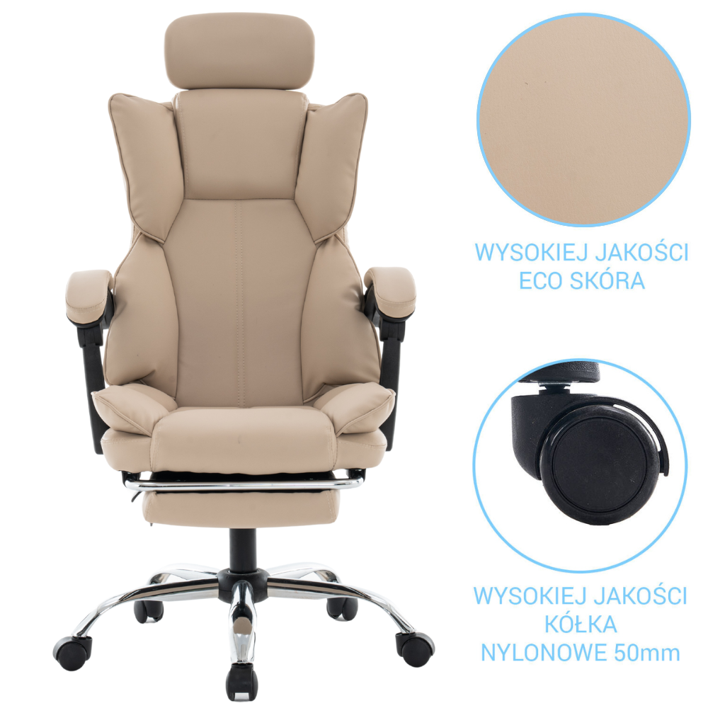 Fotel ergonomiczny biurowy obrotowy z podnóżkiem do biurka beżowy Office