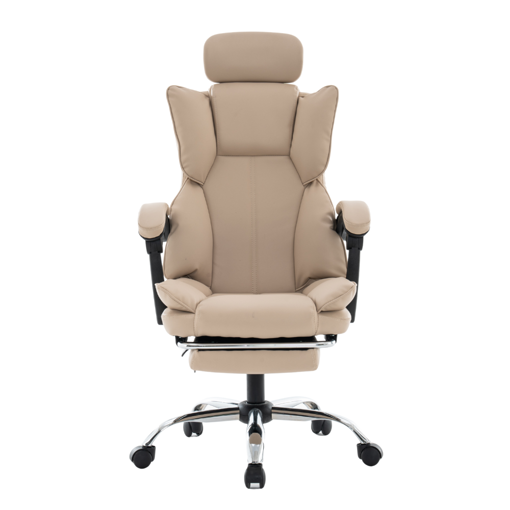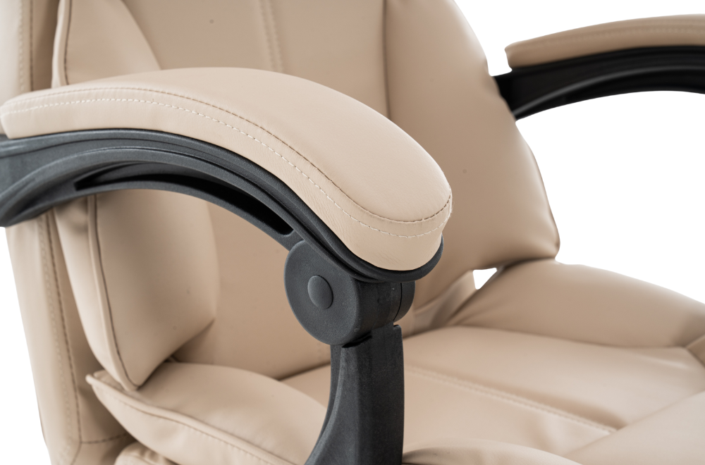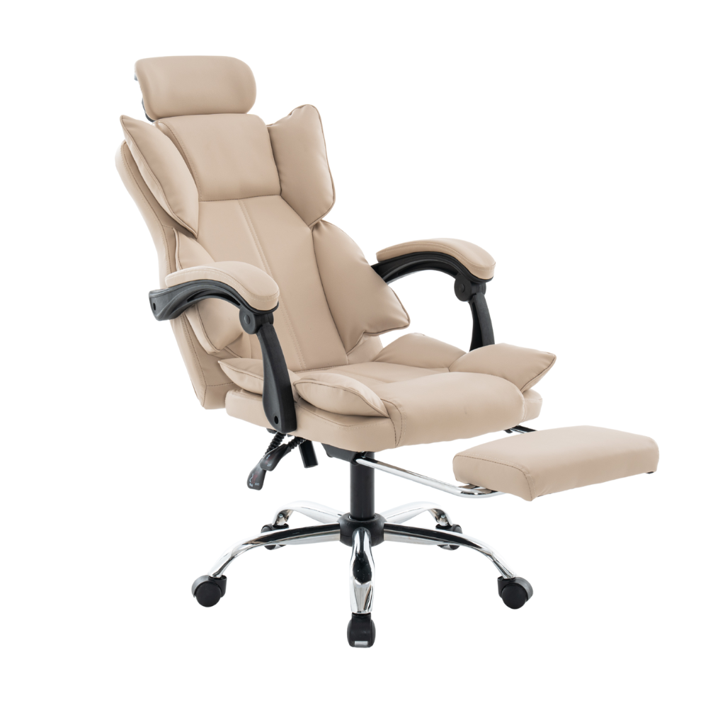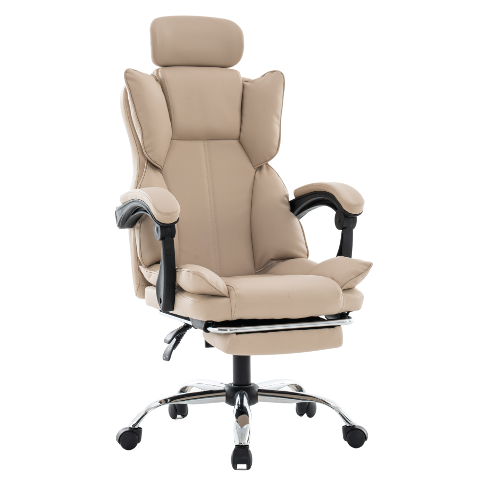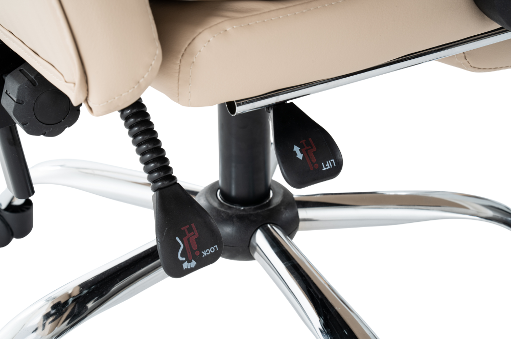 Fotel ergonomiczny biurowy obrotowy z podnóżkiem do biurka beżowy Office