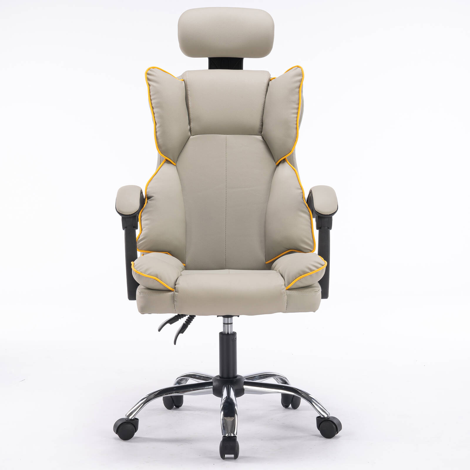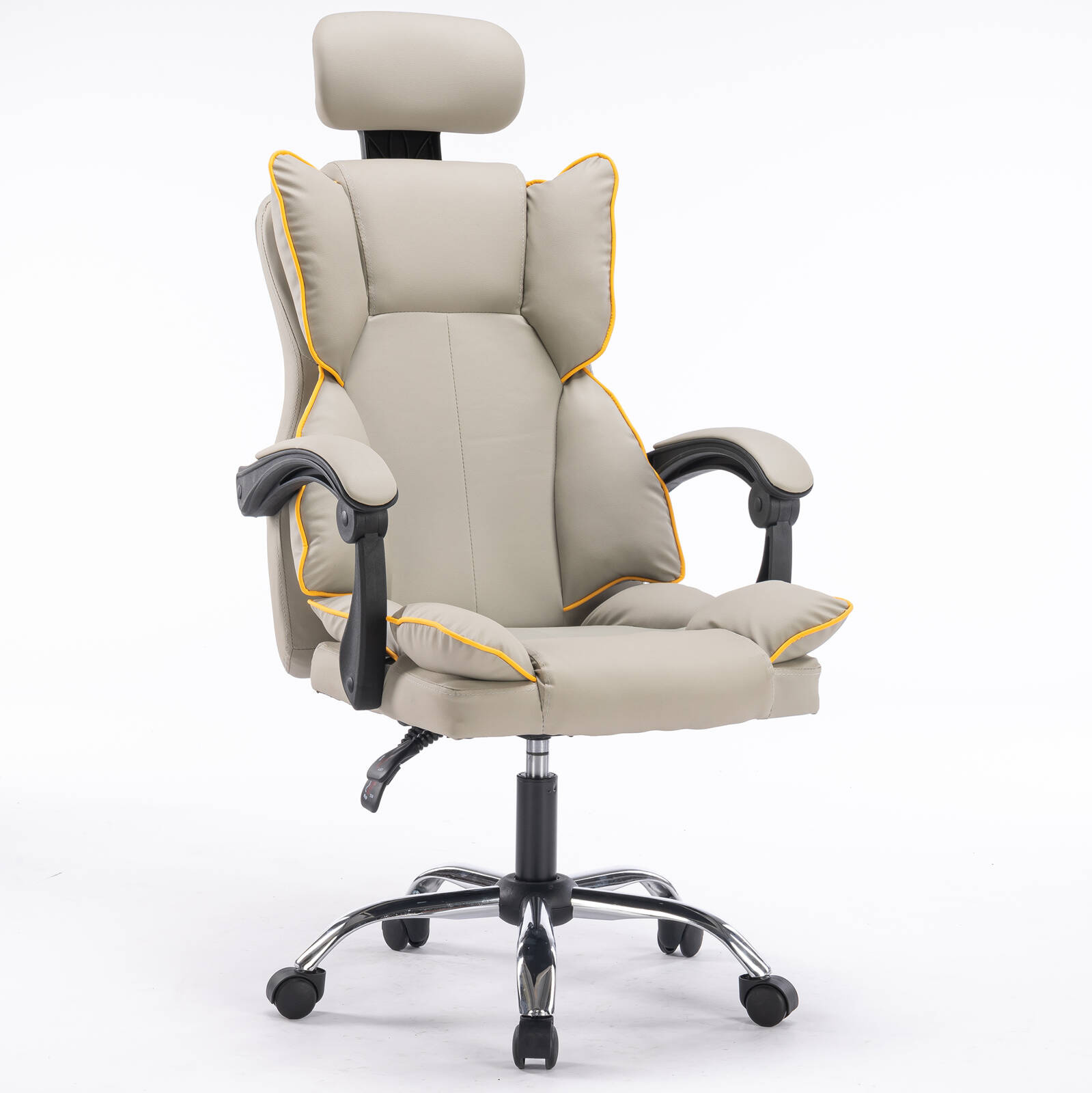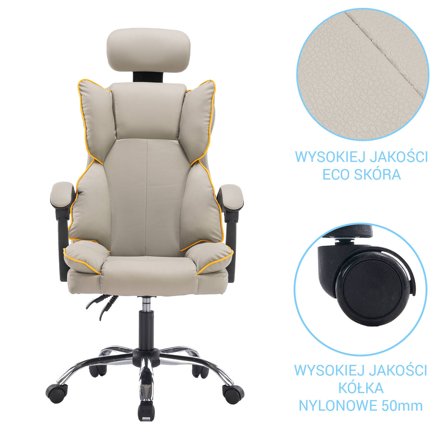 - Nowoczesny, wygodny i komfortowy fotel do pracy zdalnej, biurowej, home office, do nauki lub gry. Bardzo ergonomiczny fotel z siedziskiem kubełkowym, obrotowy, z regulacją oparcia i zagłówka. Wykończony wysokiej jakości eko-skórą. Fotel gamingowy.