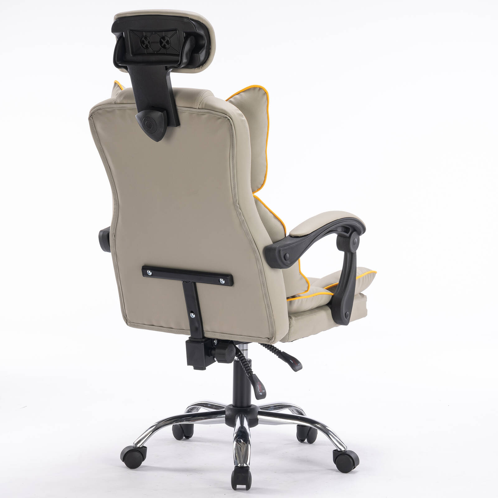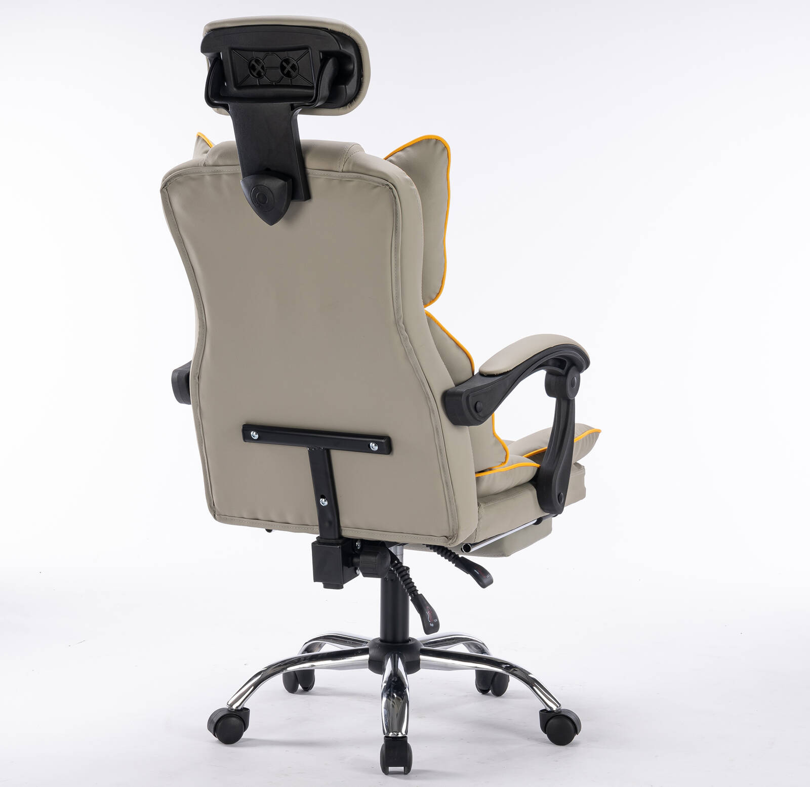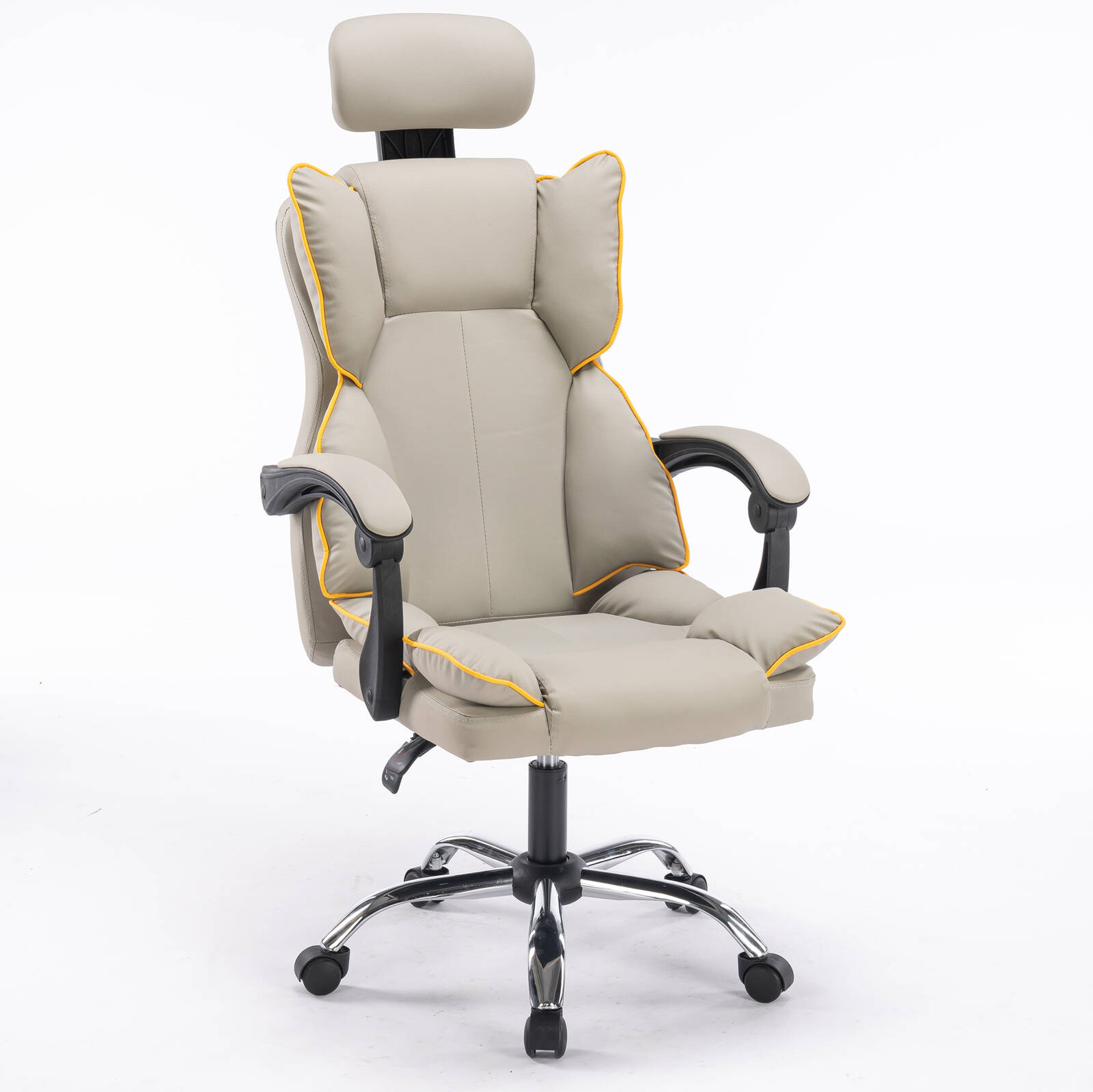 - Nowoczesny, wygodny i komfortowy fotel do pracy zdalnej, biurowej, home office, do nauki lub gry. Bardzo ergonomiczny fotel z siedziskiem kubełkowym, obrotowy, z regulacją oparcia i zagłówka. Wykończony wysokiej jakości eko-skórą. Fotel gamingowy.