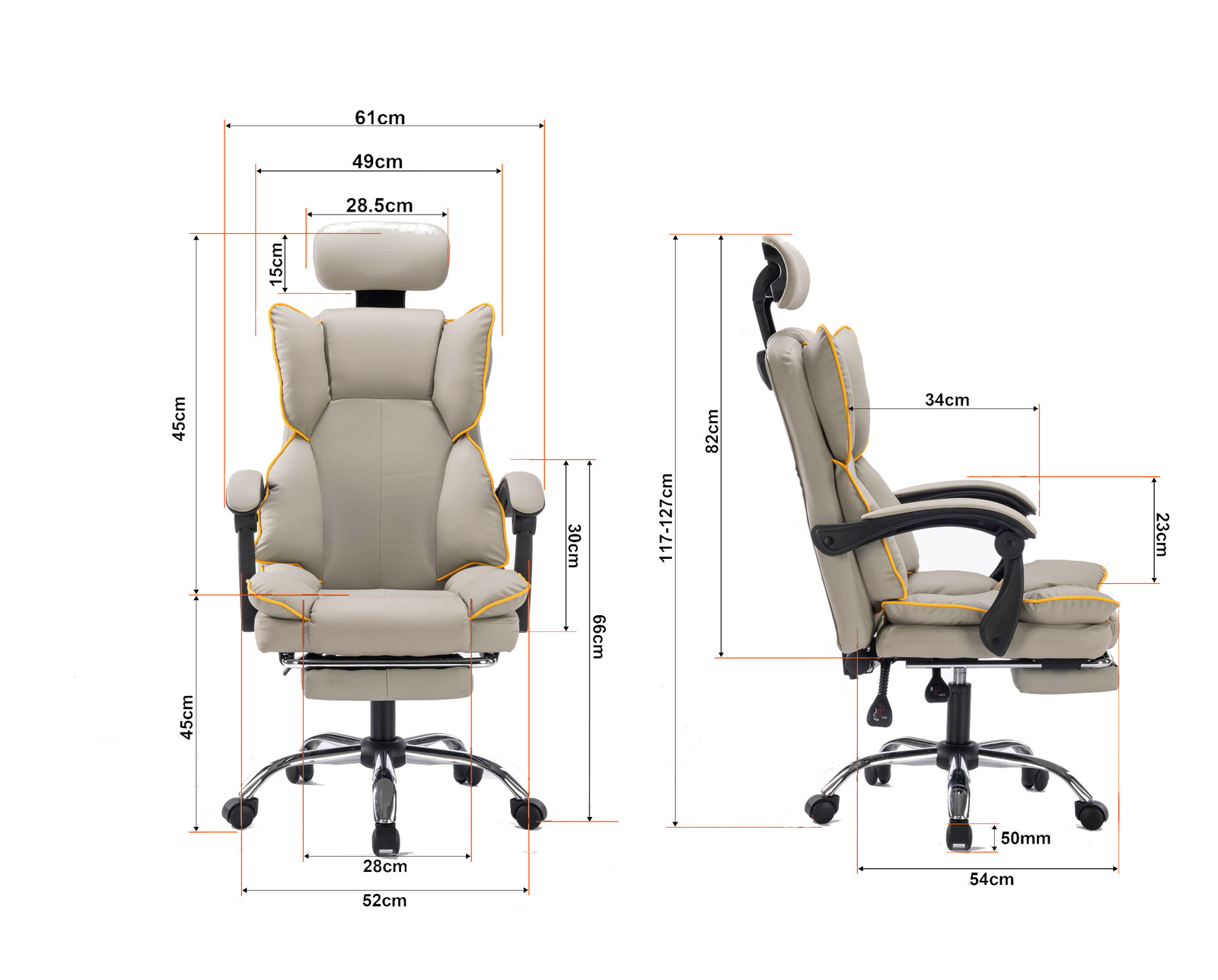 Możliwość regulacji wysokości fotela, a także wysuwany podnóżek pozwolą Twoim nogom zmieniać pozycje oraz odprężyć się, zapobiegnie to drętwieniu i skurczom.