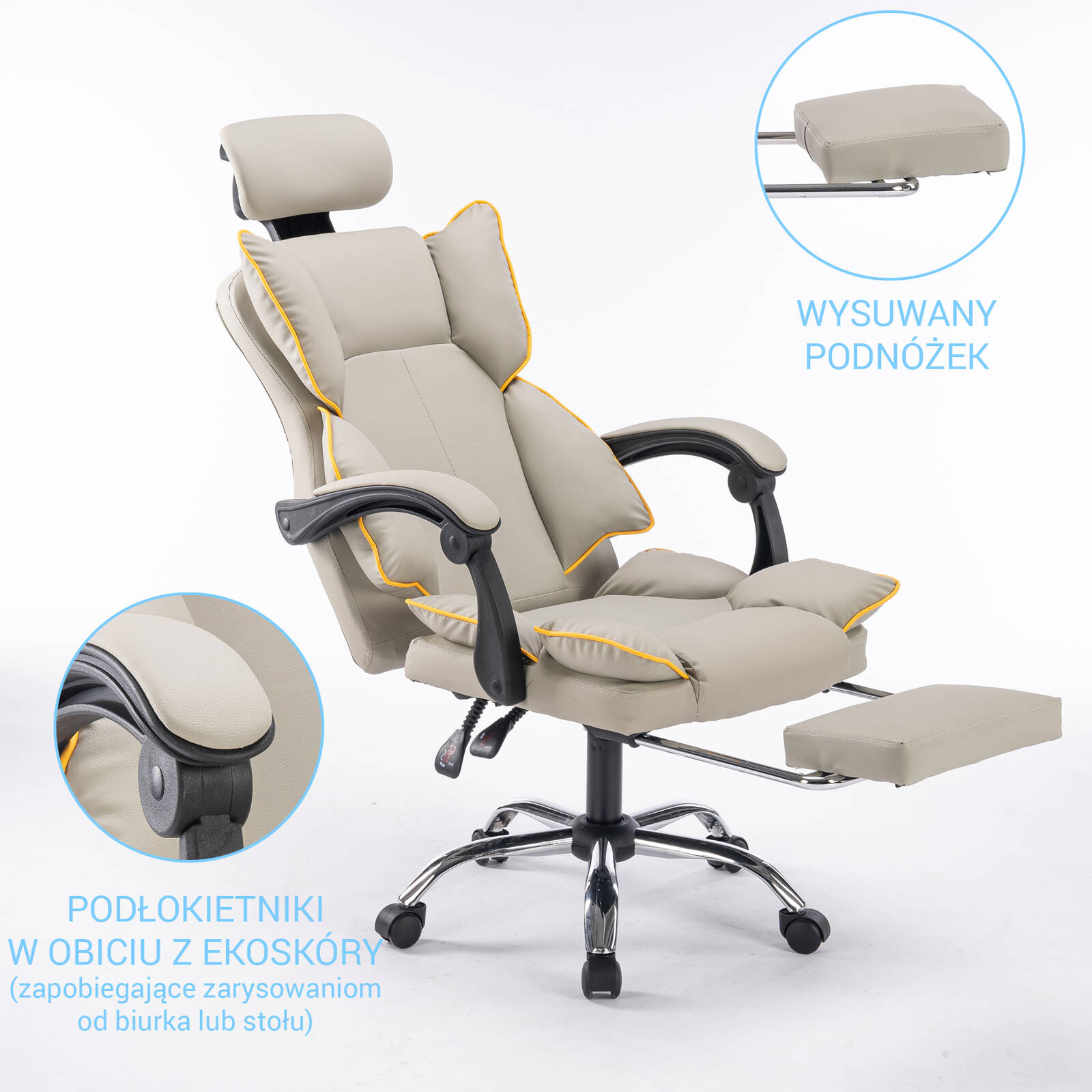 Fotel ergonomiczny biurowy obrotowy z podnóżkiem do biurka Khaki Gold Office