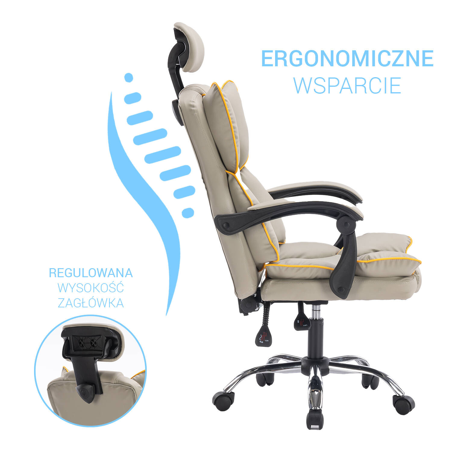 Opinie o Fotel ergonomiczny biurowy obrotowy z podnóżkiem do biurka Khaki Gold Office
