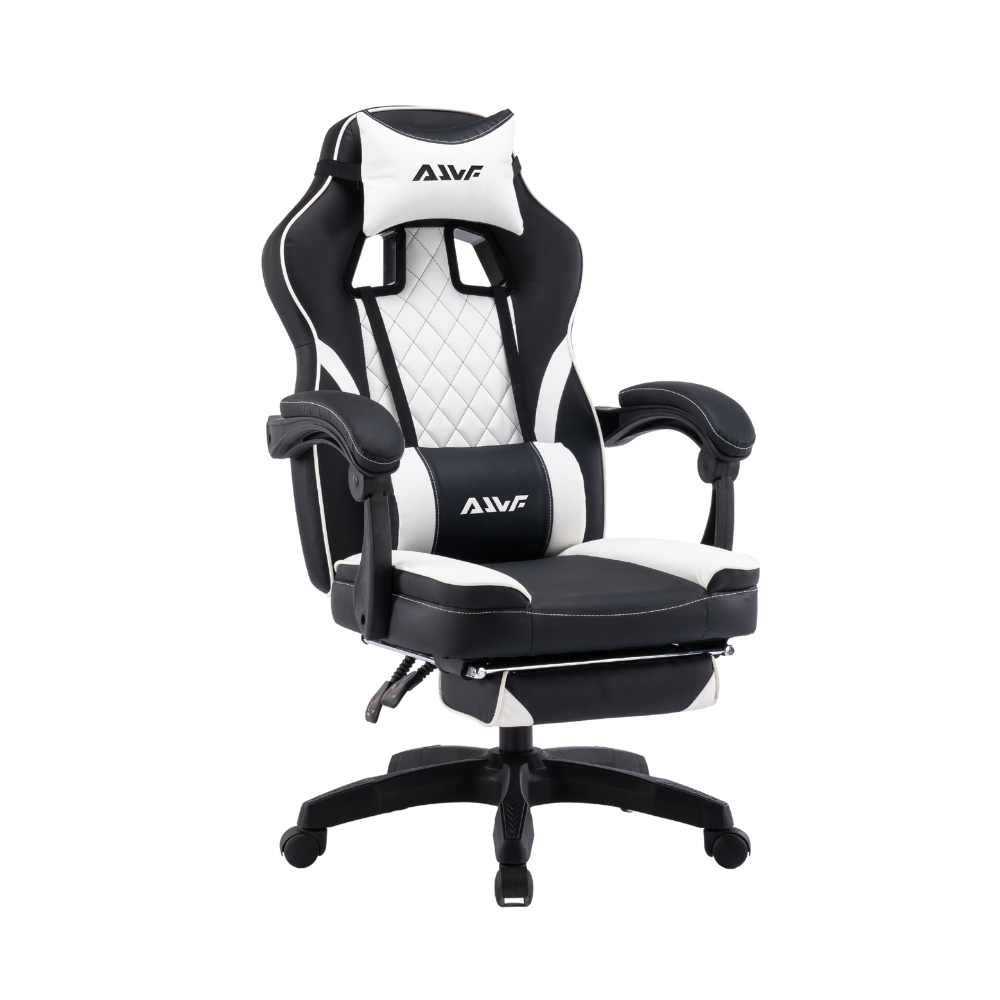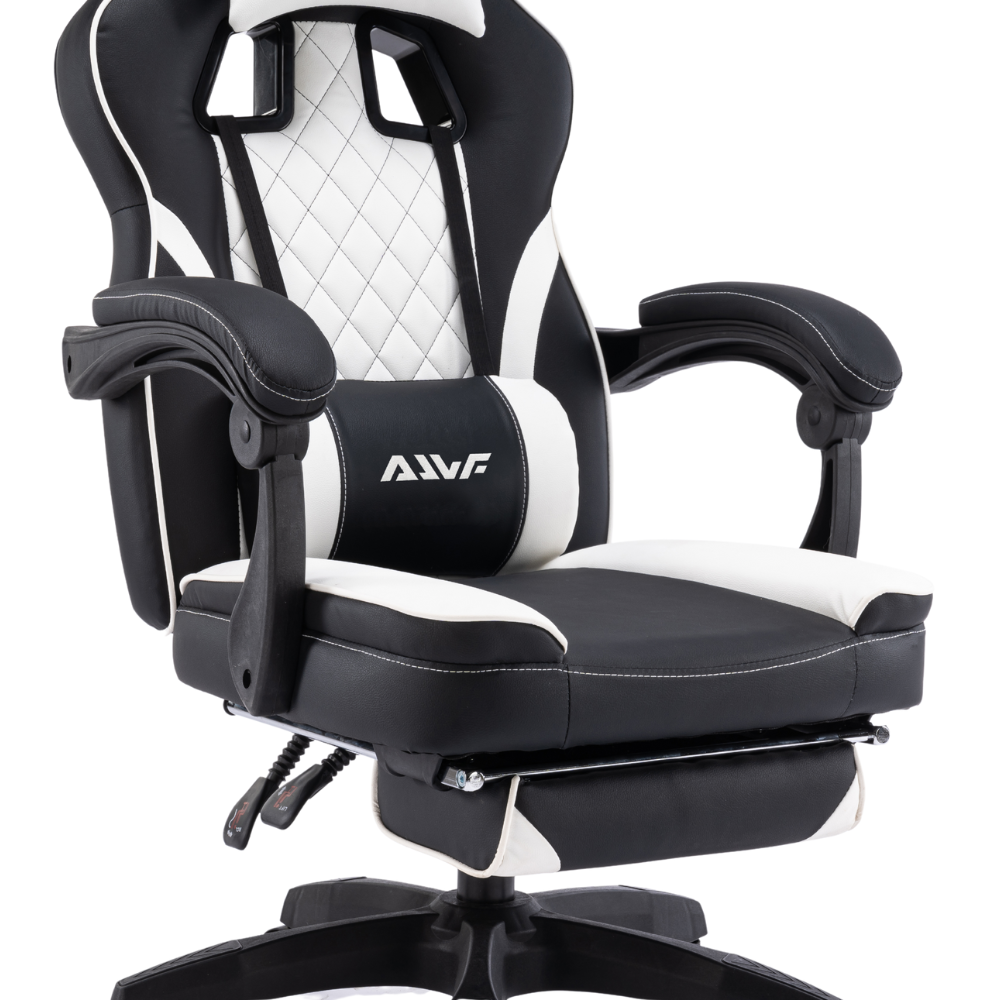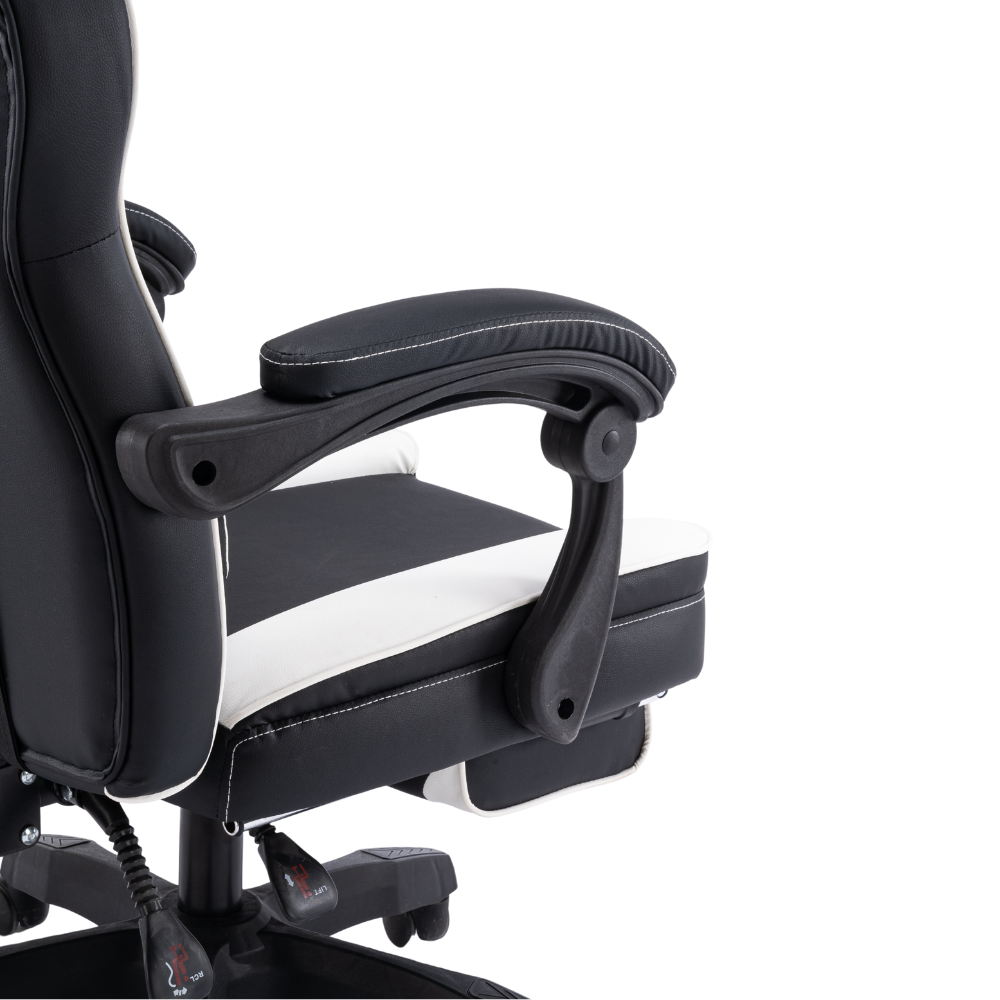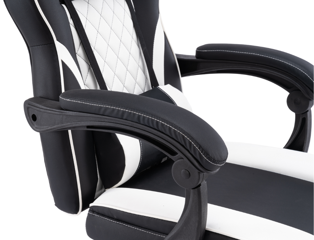 Fotel gamingowy z podnóżkiem ekoskóra krzesło dla gracza biurowy ergonomiczny czarno-biały Champion