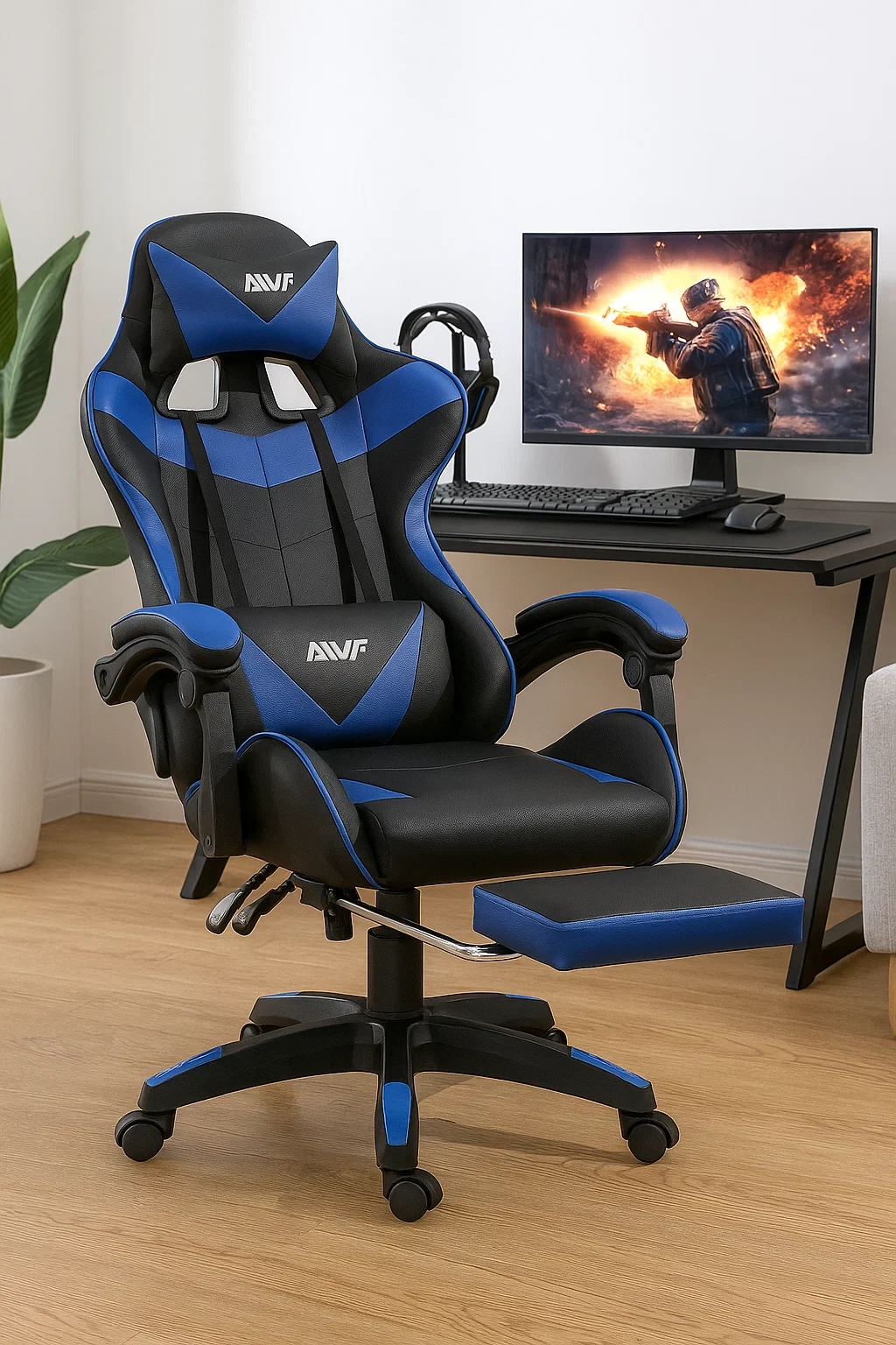 - Ergonomiczny fotel obrotowy gamingowy z podnóżkiem i kubełkowym siedziskiem. Komfort, regulacja i nowoczesny design – idealny do grania i pracy.